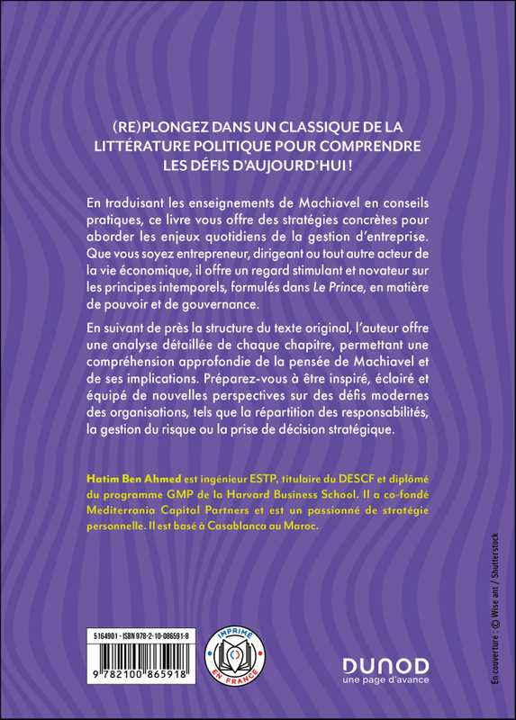 En traduisant les enseignements de Machiavel en conseils pratiques, ce livre vous offre des stratégies concrètes pour aborder les enjeux quotidiens de la gestion d’entreprise. Que vous soyez entrepreneur, dirigeant ou tout autre acteur de la vie économique, il offre un regard stimulant et novateur sur les principes intemporels, formulés dans Le Prince, en matière de pouvoir et de gouvernance.