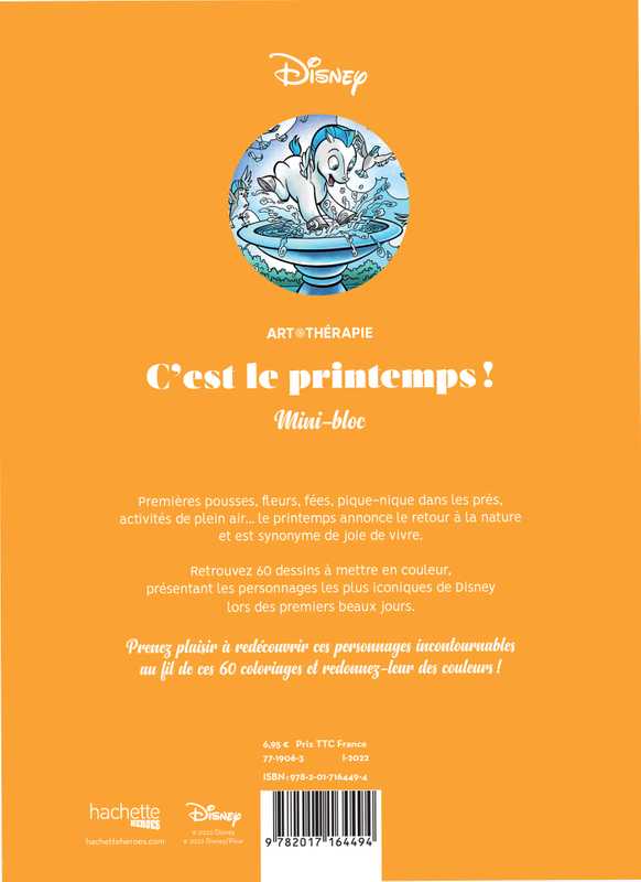 Premières pousses, fleurs, fées, pique-nique dans les prés, activités de plein air... le printemps annonce le retour à la nature. Retrouve 60 dessins à mettre en couleur, présentant les personnages les plus iconiques de Disney lors des premiers beaux jours.