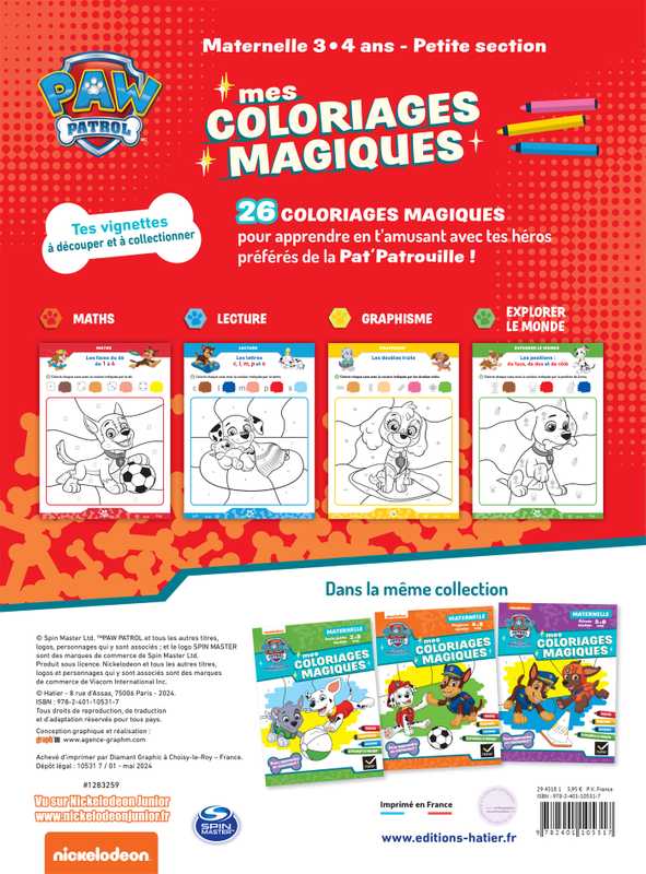 26 coloriages magiques, conçus par une enseignante, pour progresser dans tous les domaines d’apprentissage de Petite Section : activités de maths, graphisme, lecture et explorer le monde.