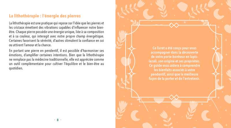 Le coeur, symbole universel d'amour, de connexion et de sincérité, se lie au lapis-lazuli, pierre souvent associée à la sagesse et à la clarté mentale. Ce porte-bonheur favorise l'expression sincère, apaise les pensées agitées et invite à vivre en harmonie avec ses émotions.