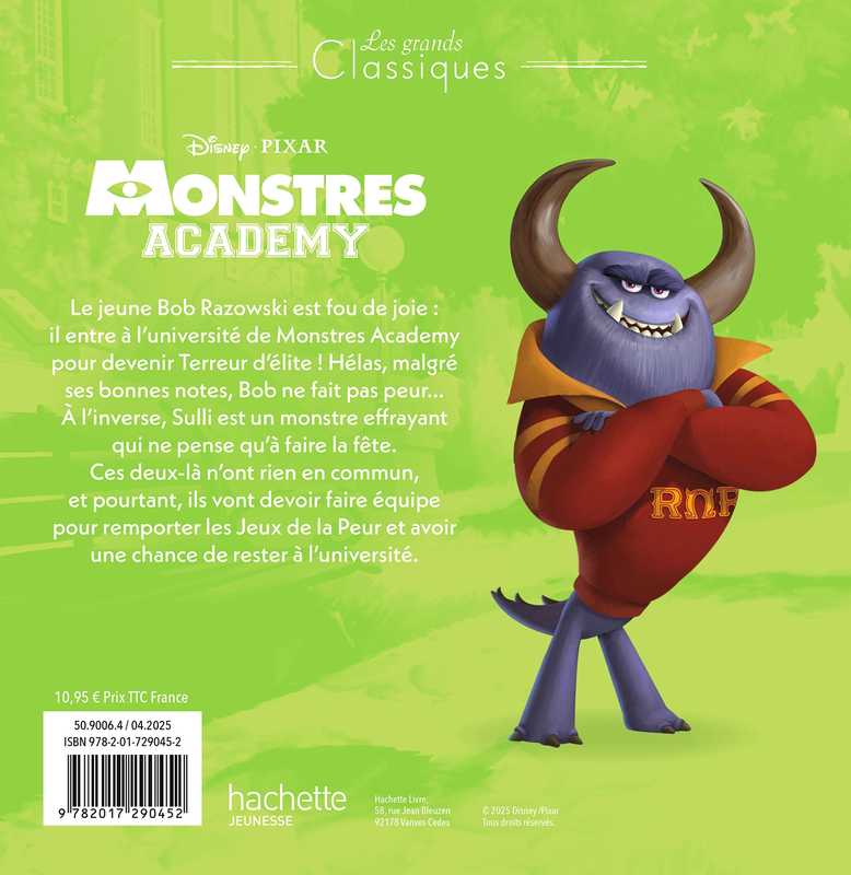 L'histoire : Le jeune Bob Razowski est fou de joie :il entre à l’université de Monstres Academy pour devenir Terreur d’élite ! Hélas, malgré ses bonnes notes, Bob ne fait pas peur… À l’inverse, Sulli est un monstre effrayant qui ne pense qu’à faire la fête.