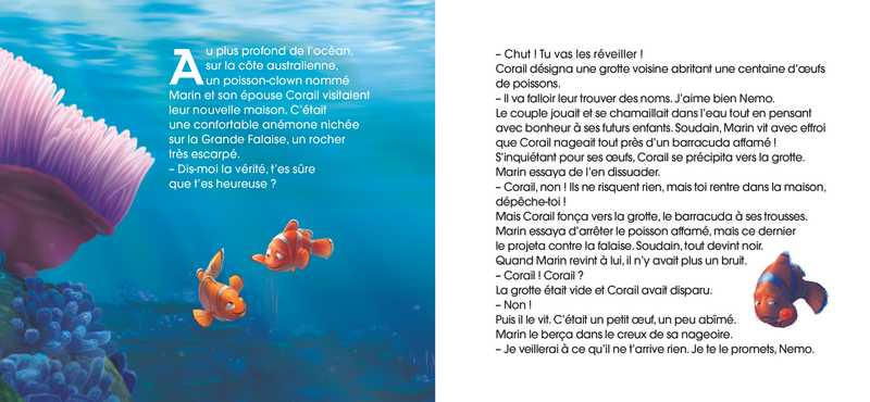 – Un petit album illustré de 48 pages, de la taille d’un boitier CD, pour découvrir les aventures de Nemo.