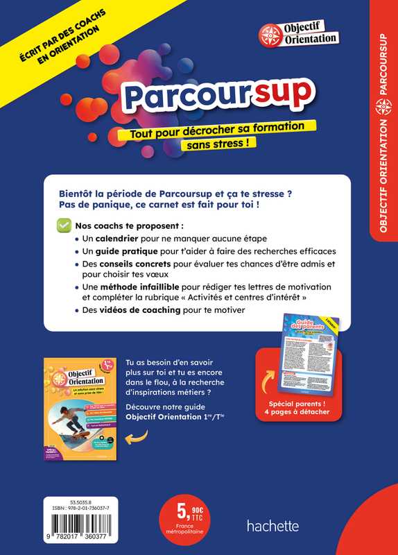 - Inclus Spécial Parents ! 4 pages détachables avec tous les conseils de nos coachs en orientation.