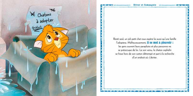 L’histoire : Un matin, sur un trottoir de New York, une boîte en carton a été posée. A l'intérieur, d'adorables petites boules de poils attendent d'être adoptées. À la fin de la journée, tous les chatons ont été emportés, sauf un : Oliver. Chassé par la pluie, il part à l'aventure. Et alors que le chat est perdu, il fait la rencontre de Roublard, un chien des rues débrouillard... et un peu voleur.