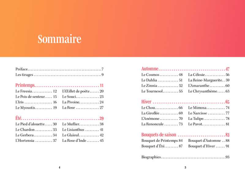 36 cartes de fleurs photographiées au fil des saisons et un livret d’accompagnement de 96 pages.