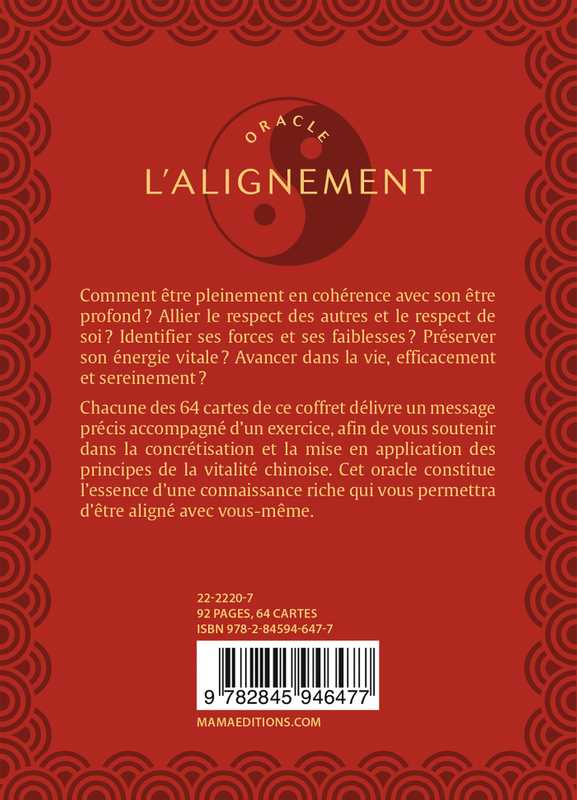 Chacune des 64 cartes de ce coffret délivre un message précis accompagné d’un exercice, afin de vous soutenir dans la concrétisation et la mise en application des principes de la vitalité chinoise. Cet oracle constitue l’essence d’une connaissance riche qui vous permettra d’être aligné avec vous-même.