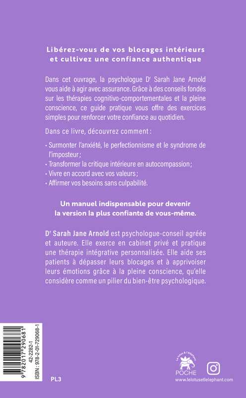 Dans cet ouvrage, la psychologue Dr Sarah Jane Arnold vous aide à agir avec assurance. Grâce à des conseils fondés sur les thérapies cognitivo-comportementales et la pleine conscience, ce guide pratique vous offre des exercices simples pour renforcer votre confiance au quotidien.