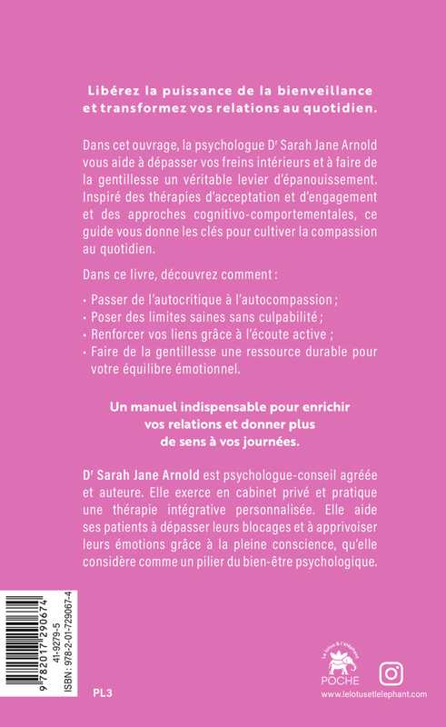 Dans cet ouvrage, la psychologue Dr Sarah Jane Arnold vous aide à dépasser vos freins intérieurs et à faire de la gentillesse un véritable levier d’épanouissement.Inspiré des thérapies d’acceptation et d’engagement et des approches cognitivo-comportementales, ce guide vous donne les clés pour cultiver la compassion au quotidien.