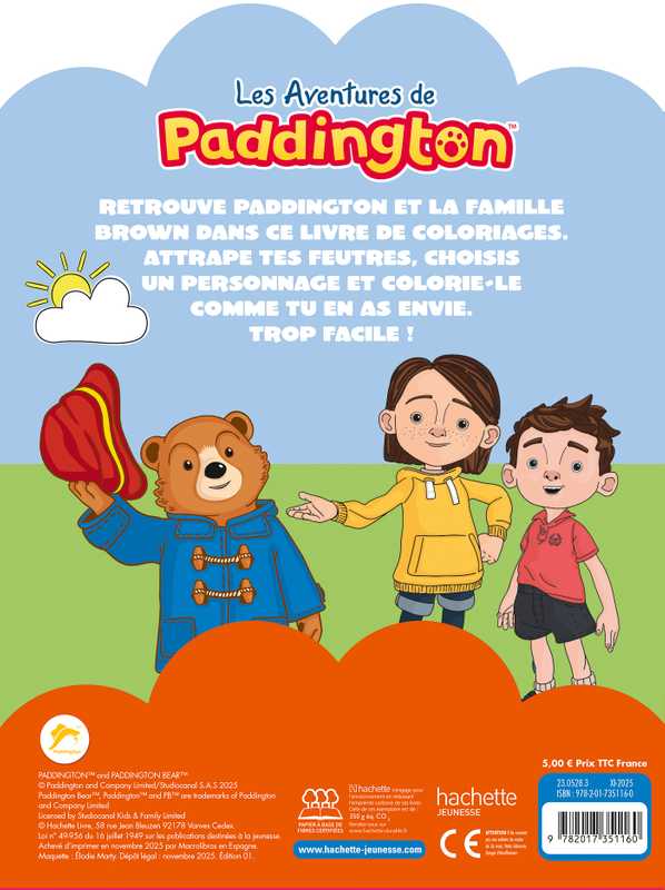 Retrouvez Paddington et la famille Brown dans ce joli livre de coloriages.