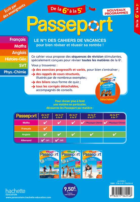 Ce cahier vous propose des séquences de révision stimulantes, spécialement conçues pour réviser toutes les matières de la 6e.