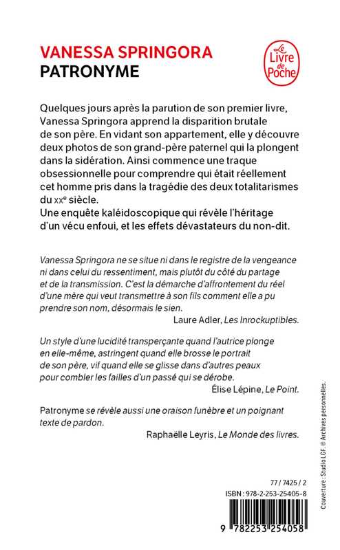 Quelques jours après la parution de son premier livre, Vanessa Springora apprend la disparition brutale de son père. En vidant son appartement, elle y découvre deux photos de son grand-père paternel qui la plongent dans la sidération. C’est le début d’une traque obsessionnelle pour comprendre qui était réellement cet homme pris dans la tragédie des deux totalitarismes du XXe siècle.