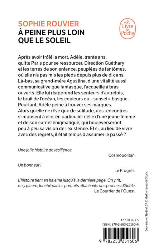 Après avoir frôlé la mort, Adèle, trente ans, quitte Paris pour se ressourcer. Direction Guéthary et les terres de son enfance, peuplées de fantômes, où elle n’a pas mis les pieds depuis plus de dix ans. Là-bas, sa grand-mère Agustina, d’une vitalité aussi communicative que fantasque, l’accueille à bras ouverts. Elle lui réapprend les senteurs d’autrefois, le bruit de l’océan, les couleurs du « sunset » basque. Pourtant, Adèle peine à trouver ses marques. Alors qu’elle ne rêve que de solitude, des rencontres s’imposent à elle, en particulier celle d’une jeune femme et de son carnet énigmatique, qui bouleverseront peu à peu sa vision de l’existence. Et si, au lieu de vivre avec des regrets, il était temps d’assumer le passé ?