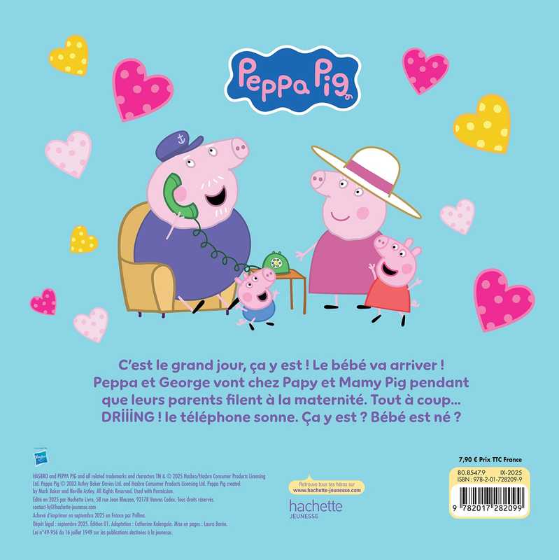 C'est le grand jour, ça y est ! Le bébé va arriver ! Peppa et George vont chez Papy et Mamy Pig pendant que leurs parents filent à la maternité. Tout à coup... DRIIING ! le téléphone sonne. Ça y est ? Bébé est né ?