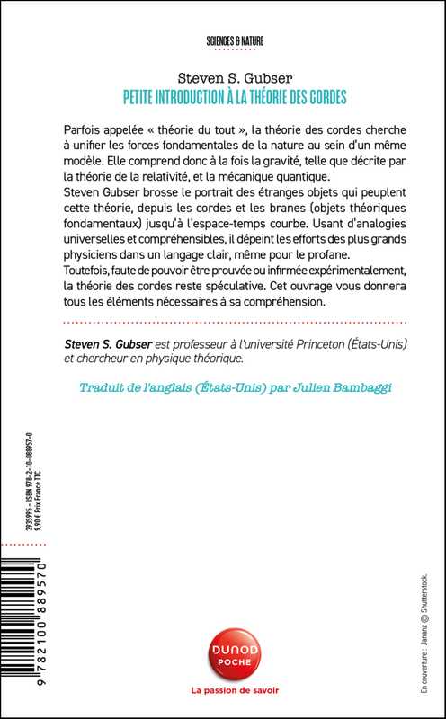 Steven Gubser brosse le portrait des étranges objets qui peuplent cette théorie, depuis les cordes et les branes (objets théoriques fondamentaux) jusqu’à l’espace-temps courbe. Usant d’analogies universelles et compréhensibles, il dépeint les efforts des plus grands physiciens dans un langage clair, même pour le profane.