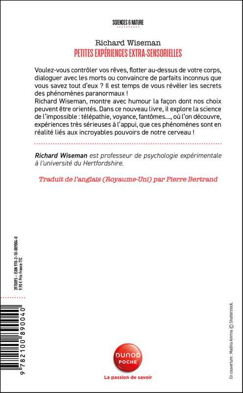 Richard Wiseman montre avec humour la façon dont nos choix peuvent être orientés. Dans ce nouveau livre, il explore la science de l’impossible : télépathie, voyance, fantômes…, où l’on découvre, expériences très sérieuses à l’appui, que ces phénomènes sont en réalité liés aux incroyables pouvoirs de notre cerveau !