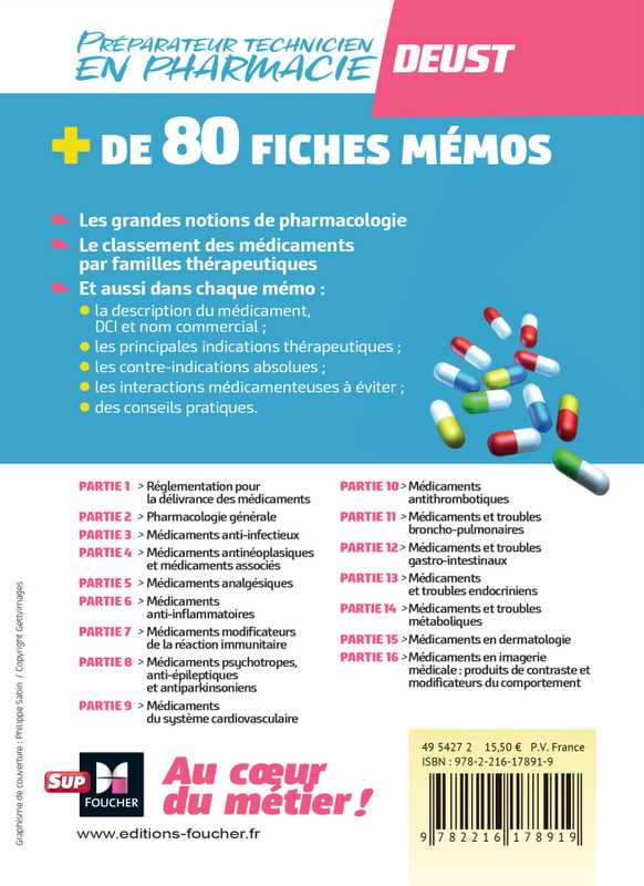 Plus de 80 fiches mémos indispensables pour la préparation de l’épreuve U31 “Sciences pharmaceutiques”.