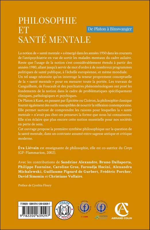 Un tel usage nécessite qu’on interroge la teneur proprement conceptuelle de la « santé mentale » pour en mesurer toute la portée. Les travaux de Canguilhem, de Foucault et des psychiatres phénoménologues ont posé les fondements de la notion dans le cadre de problématiques spécifiquement cliniques, pathologiques et psychiques.De Platon à Kant, en passant par Épictète ou Cicéron, la philosophie classique fournit également des outils susceptibles de nourrir la réflexion contemporaine. Elle permet surtout de comprendre les raisons pour lesquelles la « santé mentale » n’avait pas chez ces penseurs la forme que nous lui connaissons. Elle n’en éclaire que plus encore cette notion essentielle pour nos sociétés en perte de sens.