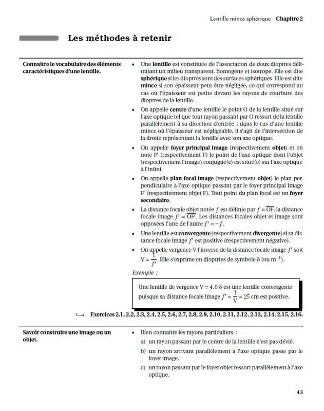 - le détail des méthodes à retenir, chacune renvoyant aux exercices correspondants ;