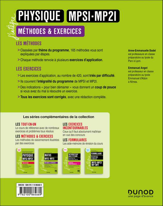 Cet ouvrage d’exercices de physique MPSI-MP2I, répond à une forte attente des étudiants de prépas sur l’apprentissage des méthodes et l’entraînement par des exercices.