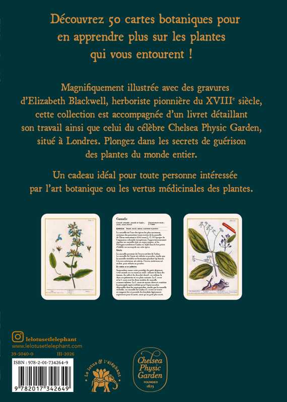 Magnifiquement illustrée avec des gravures d’Elizabeth Blackwell, herboriste pionnière du XVIIIe siècle, cette collection est accompagnée d’un livret détaillant son travail ainsi que celui du célèbre Chelsea Physic Garden, situé à Londres. Plongez dans les secrets de guérison des plantes du monde entier. Un cadeau idéal pour toute personne intéressée par l’art botanique ou les vertus médicinales des plantes.