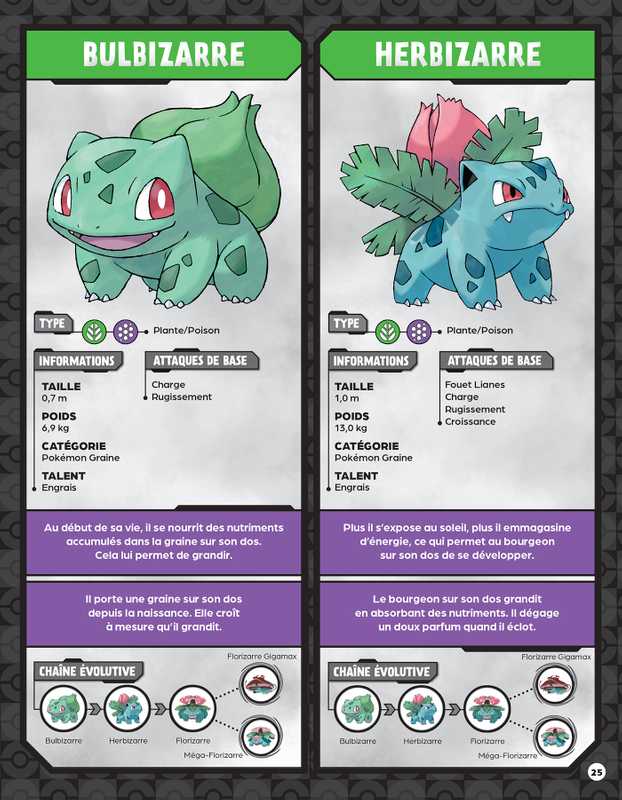 - Les types, les caractéristiques, les chaînes évolutives et les attaques de plus de 1000 Pokémon
