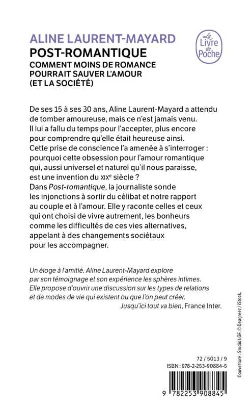 De ses 15 à ses 30 ans, Aline Laurent-Mayard a attendu de tomber amoureuse, mais ce n’est jamais venu. Il lui a fallu du temps pour l’accepter, plus encore pour comprendre qu’elle était heureuse ainsi. Cette prise de conscience l’a amenée à s’interroger : pourquoi cette obsession pour l’amour romantique qui, aussi universel et naturel qu’il nous paraisse, est une invention du xixe siècle ?