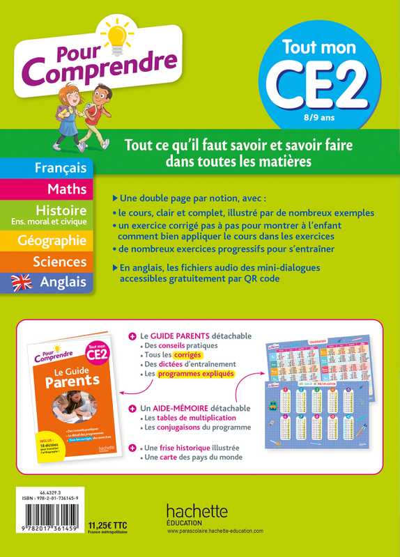 + un aide-mémoire pour connaître les tables de multiplication et toutes les conjugaisons au programme