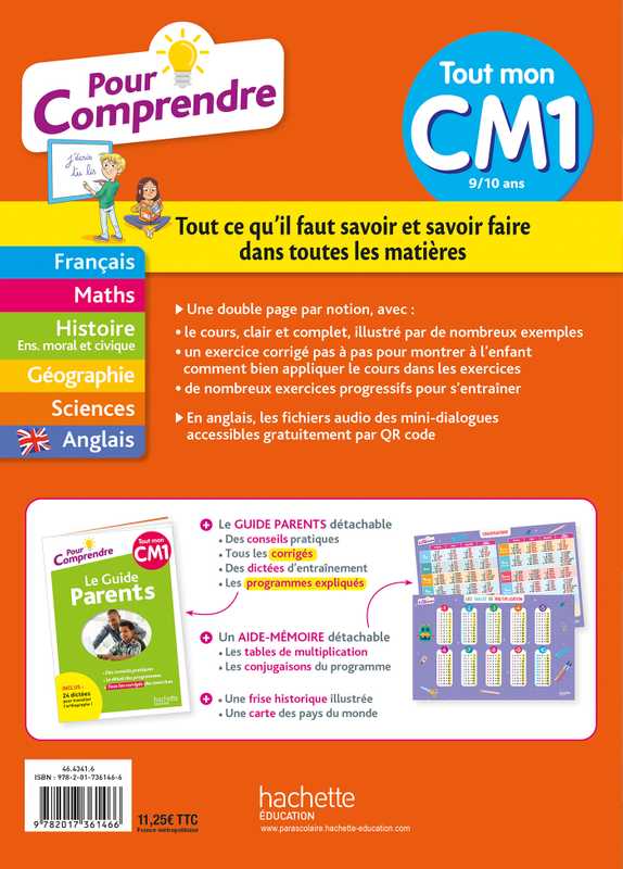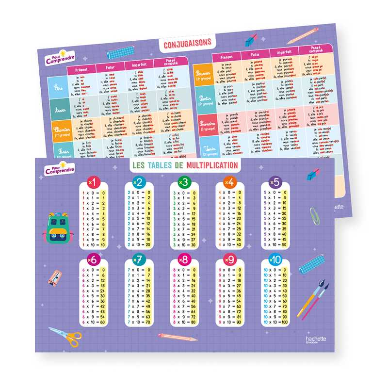 + un aide-mémoire pour connaître les tables de multiplication et toutes les conjugaisons au programme