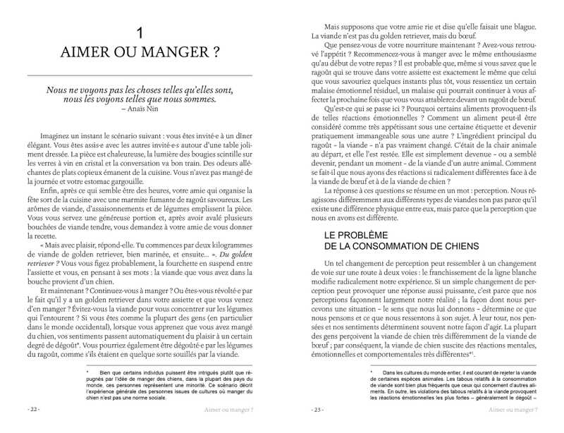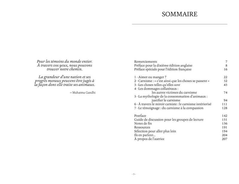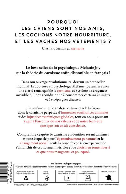 L'ouvrage révèle comment ce système invisible crée des contradictions dans notre perception des animaux, nous empêchant de faire des choix conscients et éthiques. Grâce à une analyse psychologique et sociale, Melanie Joy nous invite à prendre conscience de ce mécanisme et à repenser notre rapport à la consommation animale. Ce livre est une réflexion essentielle pour ceux qui souhaitent comprendre et repenser leurs choix alimentaires, en s'appuyant sur une éthique de compassion et de justice envers tous les animaux.
