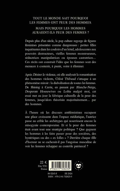 Après Désirer la violence, où elle analysait la romantisation des hommes violents, Chloé Thibaud s’attaque à un phénomène miroir : la diabolisation de toutes les femmes. De Shining à Carrie, en passant par Blanche-Neige, Desperate Housewives ou Lolita malgré moi, cet essai met au jour la fabrique culturelle de la peur des femmes, jusqu’alors théorisée majoritairement… par des hommes.