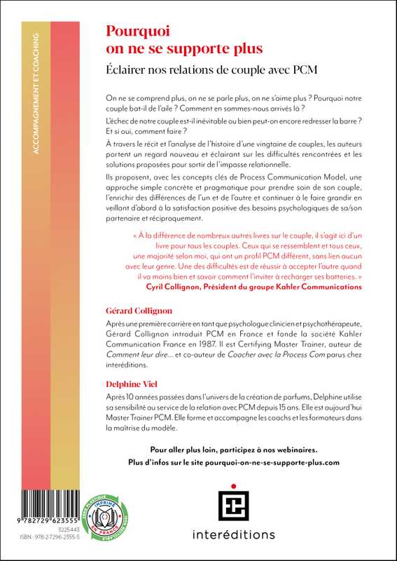 Ils proposent, avec les concepts clés de Process Communication Model, une approche simple concrète et pragmatique pour prendre soin de son couple, l’enrichir des différences de l’un et de l’autre et continuer à le faire grandir en veillant d’abord à la satisfaction positive des besoins psychologiques de sa/son partenaire et réciproquement.