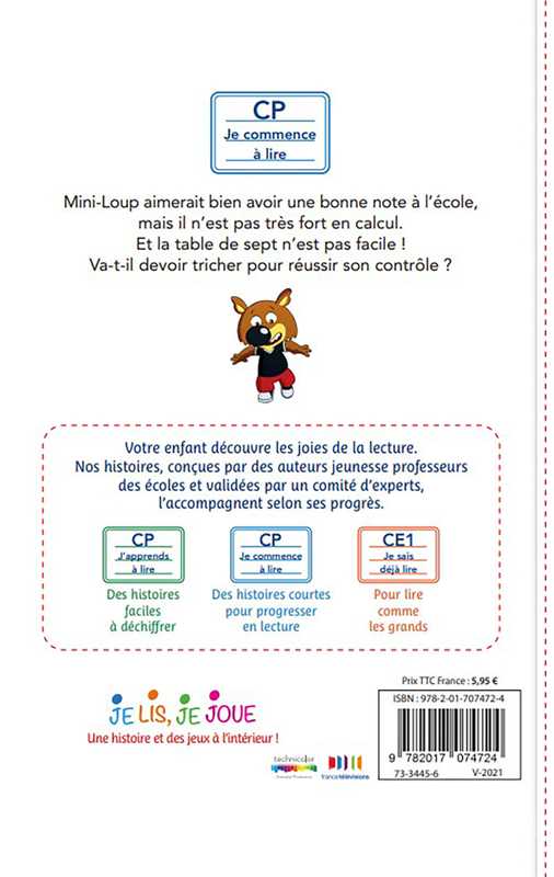 Pour avoir une bonne note à son prochain contrôle de mathématiques, Mini-Loup décide de tricher, en recopiant une table de multiplication sur un petit papier. Il a en effet constaté que ses parents s'autorisaient, eux aussi, quelques petites ruses. Mais lors du contrôle, Mini-Loup ne parvient pas à sortir le précieux papier, il doit faire appel à sa mémoire...