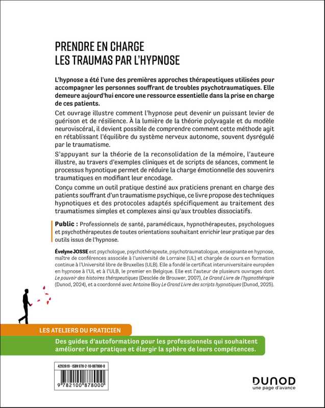 Conçu comme un outil pratique destiné aux praticiens prenant en charge des patients souffrant d’un traumatisme psychique, ce livre propose des techniques hypnotiques et des protocoles adaptés spécifiquement au traitement des traumatismes simples et complexes ainsi qu’aux troubles dissociatifs.