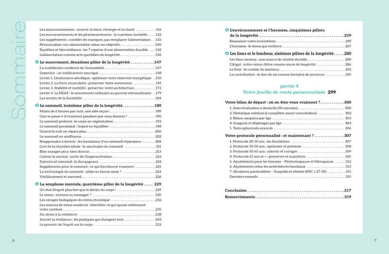 • Tous les conseils pour entretenir les 6 piliers de la longévité : l’alimentation,