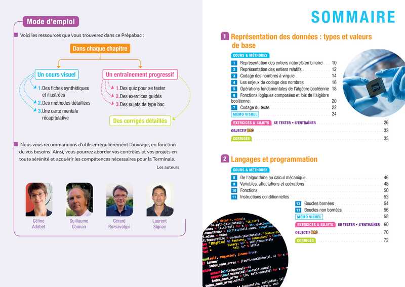 Un outil de travail complet et efficace, conforme au programme de la spécialité NSI (« Numérique et sciences informatiques ») en 1re générale. Dans chaque chapitre : le cours, les méthodes clés, des exercices et sujets corrigés. Pour vous accompagner tout au long de votre Première et vous aider à avoir un bon dossier ParcourSup.