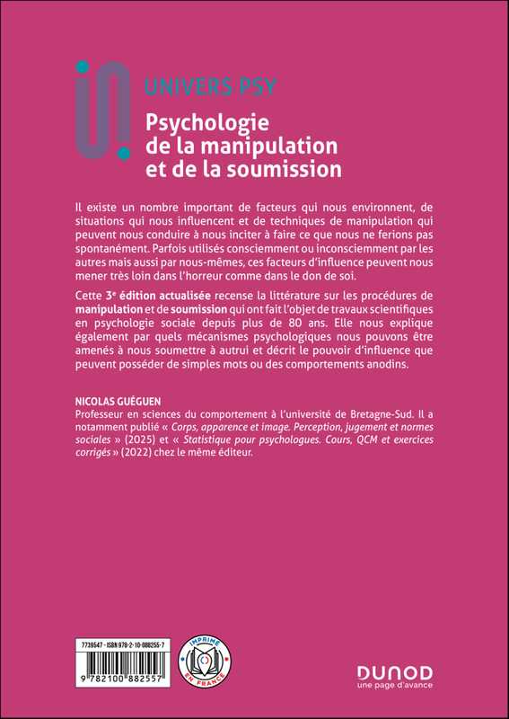 Cette 3ème édition actualisée recense la littérature sur les procédures de manipulation et de soumission qui ont fait l’objet de travaux scientifiques en psychologie sociale depuis près de 80 ans. Elle explique également par quels mécanismes psychologiques nous pouvons être amenés à nous soumettre à autrui et montre le pouvoir d’influence que peuvent posséder de simples mots ou des comportements anodins.