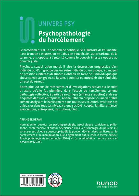 Après plus 20 ans de recherches et d’investigations actives sur le sujet et alors qu’elle fut pionnière dans l’étude du harcèlement comme pathologie collective, à partir de sa clinique (enfants et adultes) et de ses enquêtes dans les entreprises, l'auteur propose ici une véritable somme analysant le harcèlement sous toutes ses coutures et ses enjeux, et dans tous les domaines : couple, famille, enfance, entreprise, institution, État…