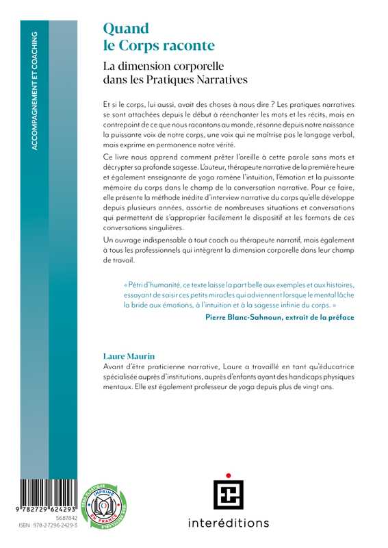 Un ouvrage indispensable à tout coach ou thérapeute narratif, mais également à tous les professionnels qui intègrent la dimension corporelle dans leur champ de travail. Mais surtout un livre pétri d’humanité, qui laisse la part belle aux exemples et aux histoires, essayant de saisir ces petits miracles qui adviennent lorsque le mental lâche la bride aux émotions, à l’intuition et à la sagesse infinie du corps.
