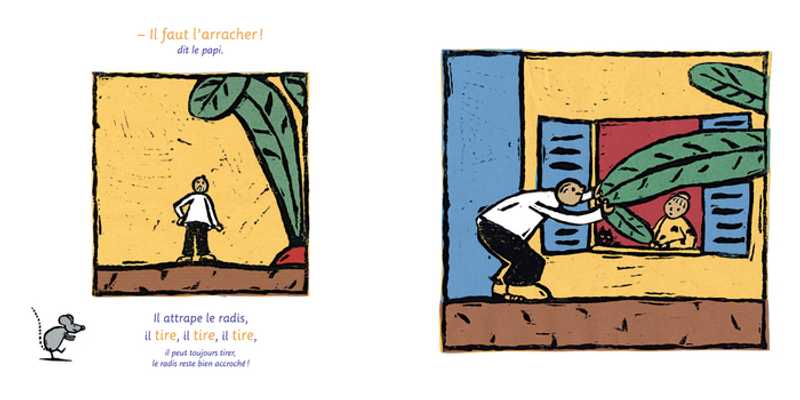 Un seul radis. Mais un radis récalcitrant qui pousse, qui pousse… Qui va pouvoir l’arracher ? Le papi ? La petite fille ? Ou la petite souris ? Un conte d’origine russe.