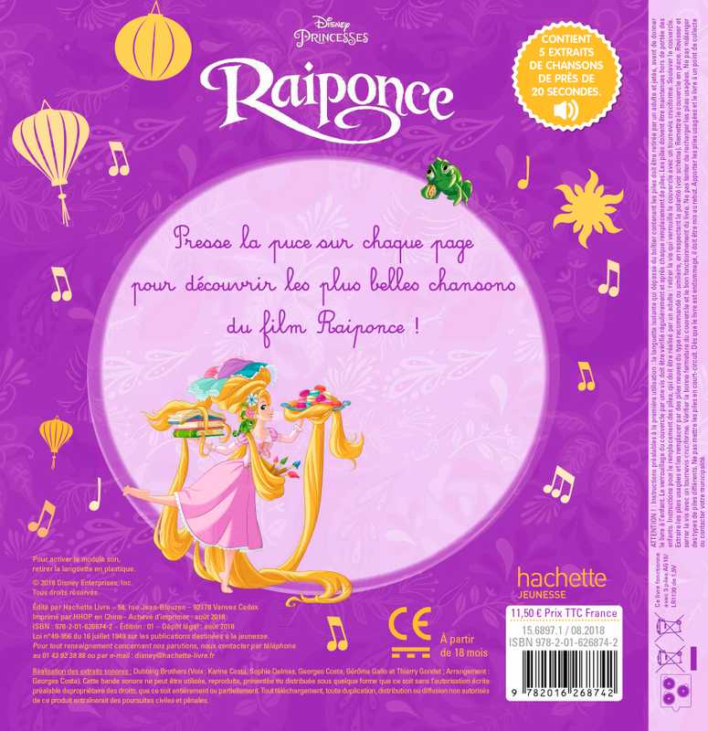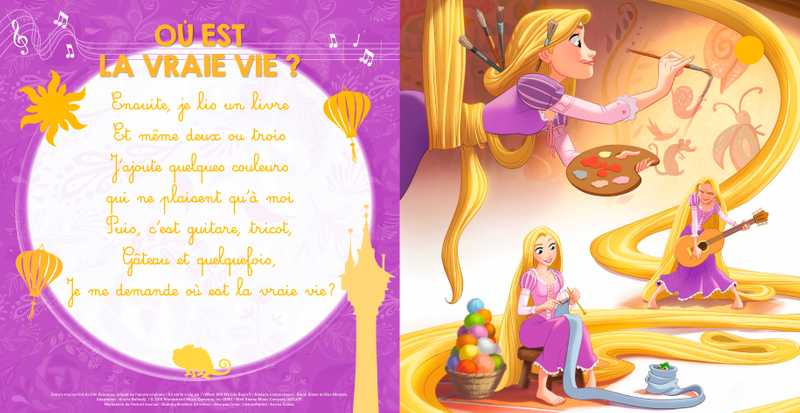 Sur chaque page, l'enfant recherche dans l'illustration le petit bouton qui déclenchera la chanson. Une illustration simple et tendre accompagne chaque chanson mythique de Raiponce et invite à découvrir l'univers magique du film. En écoutant ou en chantant, l’enfant peut observer les détails de l'image tout en étant autonome.