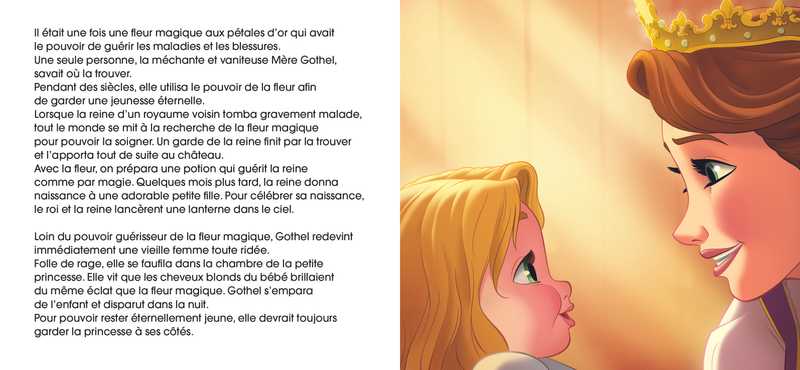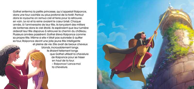 – Un petit album illustré de 48 pages, de la taille d’un boitier CD, pour découvrir les aventures de Raiponce.