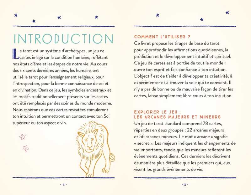 Chacune des 78 cartes présente astucieusement des situations que tu pourrais rencontrer (ou pas) dans ta vie de tous les jours. Certaines images font rêver, comme l'As de Coupes et son beau garçon de café, tandis que d'autres transmettent un message puissant, telles que les Sept de Bâtons et sa manifestation politique ! Chaque carte représente la vie actuelle tout en restant fidèle à sa signification originale.