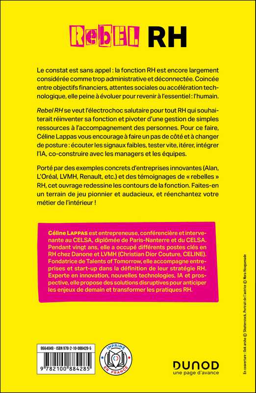 « Rebel RH » se veut l’électrochoc salutaire de tout RH qui souhaiterait réinventer sa fonction et pivoter d’une gestion de simples ressources à l’accompagnement des personnes. Pour ce faire, Céline Lappas vous encourage à faire un pas de côté et à changer de posture : écouter les signaux faibles, tester vite, itérer, intégrer l’IA, co-construire avec les managers et les équipes.