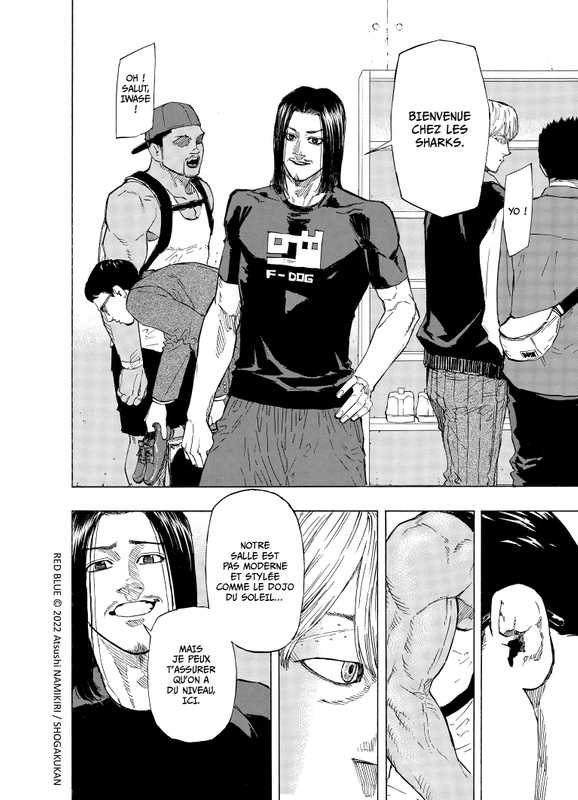 Publié dans le magazine Bic Comic des éditions Shogakukan, Red Blue est un manga de sport aux combats dynamiques, scénarisé et dessiné par Atsushi Namikiri.