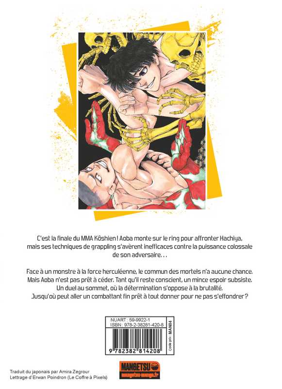 C'est la finale du MMA Kôshien ! Aoba monte sur le ring pour affronter Hachiya, mais ses techniques de grappling s'avèrent inefficaces contre la puissance colossale de son adversaire...