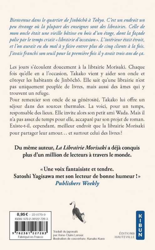 Les jours s'écoulent doucement à la librairie Morisaki. Chaque fois qu'elle en a l'occasion, Takako vient y aider son oncle et côtoyer les habitants de Jinbôchô. Elle sait qu'une librairie n'est pas uniquement peuplée de livres, mais aussi des âmes qui y trouvent un refuge. Pour remercier son oncle de sa générosité, Takako lui offre un séjour dans des sources thermales. La voici, pour un temps, responsable des lieux. Elle invite alors son ami Wasada, espérant officialiser leur relation. Mais il n'a pas assez de temps pour elle, accaparé par son projet de roman. Existe-il, cependant, meilleur endroit que la librairie Morisaki pour partager leur amour... et surtout celui des livres ?