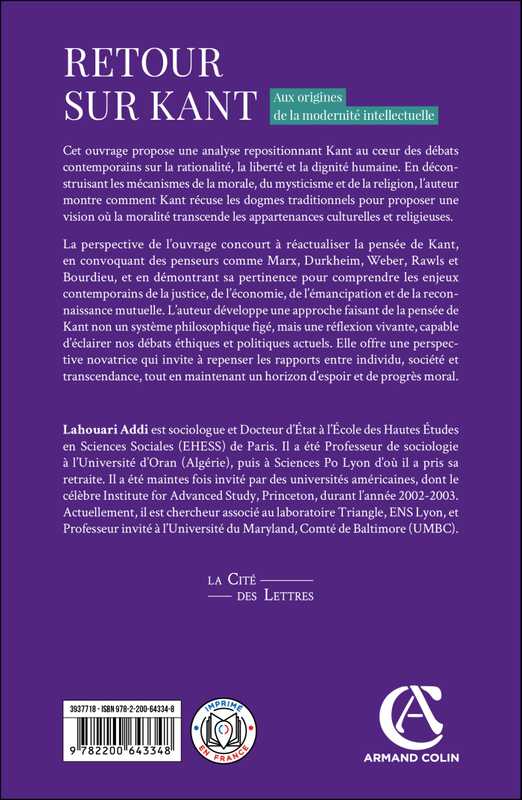 Cet ouvrage propose une analyse repositionnant Kant au coeur des débats contemporains sur la rationalité, la liberté et la dignité humaine. En déconstruisant les mécanismes de la morale, du mysticisme et de la religion, l’auteur montre comment Kant récuse les dogmes traditionnels pour proposer une vision où la moralité transcende les appartenances culturelles et religieuses.