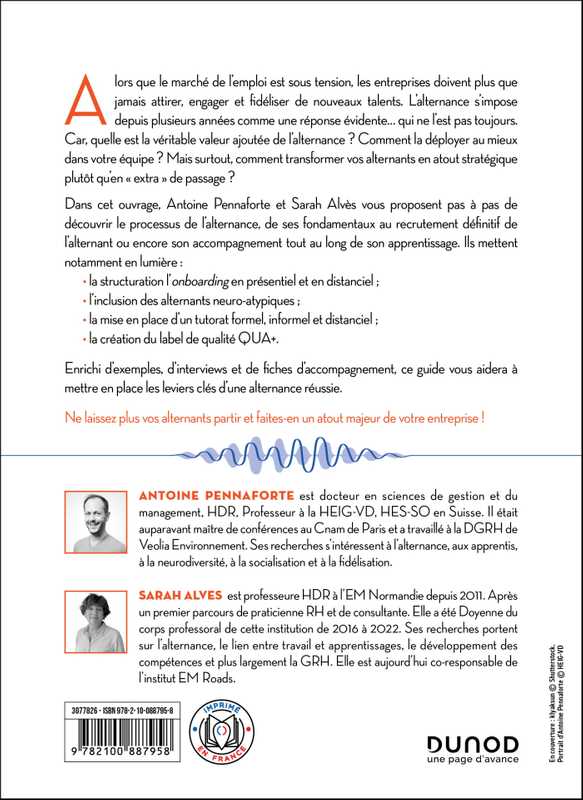 Dans cet ouvrage, Antoine Pennaforte et Sarah Alves dévoilent étape par étape tout le processus de l’alternance : ses bases, l’intégration et l’accompagnement de l’alternant, jusqu’à son éventuelle embauche définitive. Ils mettent notamment en lumière :