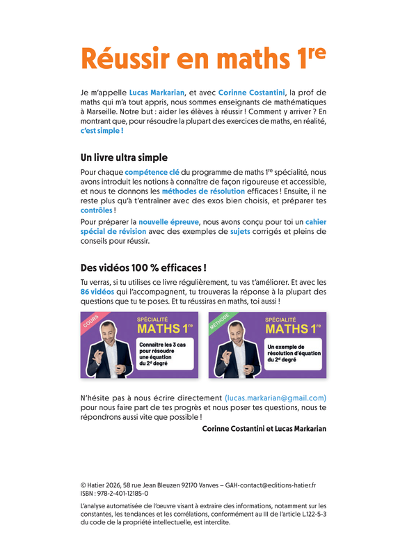 • Grâce à ses conseils et ses astuces, si tu utilises ce livre régulièrement, tu vas t’améliorer, tu réussiras en maths, toi aussi !