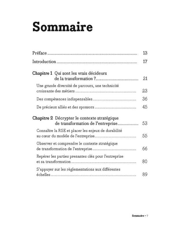 Qui sont les vrais décideurs et comment les accompagner ? Comment structurer une transformation efficace et l’ancrer au coeur des modèles dans un contexte en pleine mutation ? En partageant des cas concrets et de nombreux retours d’expérience de professionnels, ce livre décrypte les leviers stratégiques, identifie les forces motrices et fournit des outils concrets pour optimiser l’action au sein de l’entreprise et au-delà. Du diagnostic initial à l’évaluation des résultats, il guide les décideurs vers un avenir durable via une démarche plus robuste, humaine et alignée avec les attentes du marché et des parties prenantes, conciliant business et limites planétaires.